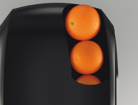 A préselő alkatrészek új, kúp formájú kialakításának köszönhetően a gyümölcs simán és tökéletesen illeszkedik a facsarórendszerbe.